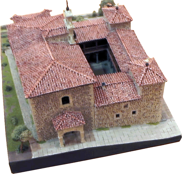En el interior nos encontramos con un agradable patio y su pozo, cuya planta baja porticada presenta esbeltos pilares de piedra sobre los que se levanta la primera planta, en ella un corredor de pilares y balaustrada de madera circunda todo el recinto a modo de claustro conventual. La fachada principal y el patio se adornan con parras que nos recuerdan la advocación de nuestra patrona.
